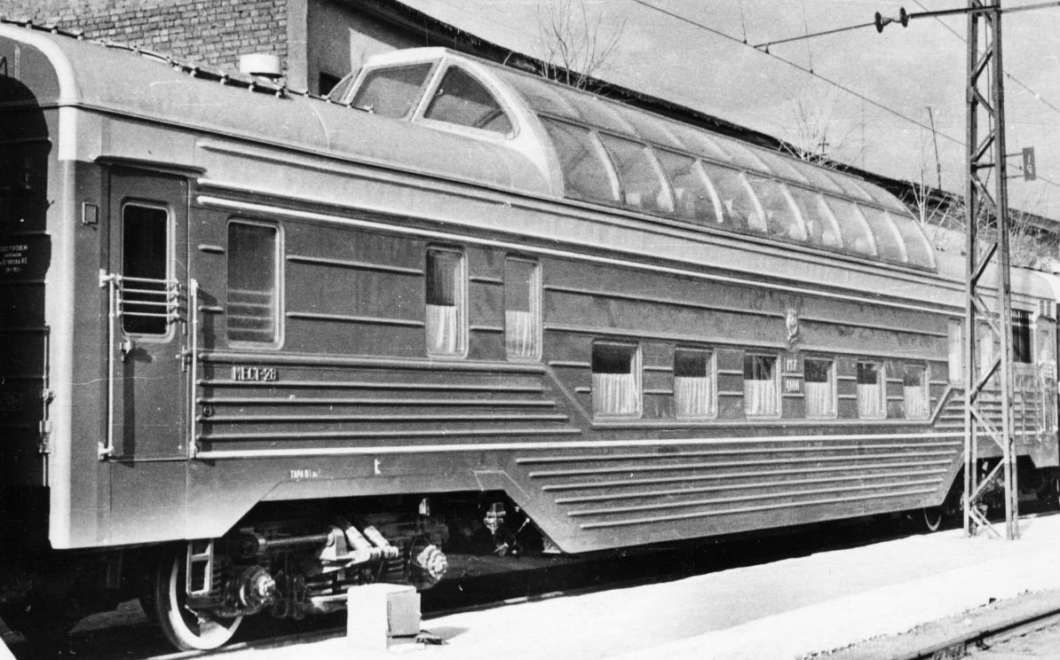 По чертежу он называется "Пассажирский вагон с куполом для обозрения местности". Вот еще фото, сделанное в 1963 году:SM@TRON:и Егоровский двухэтажный вагон