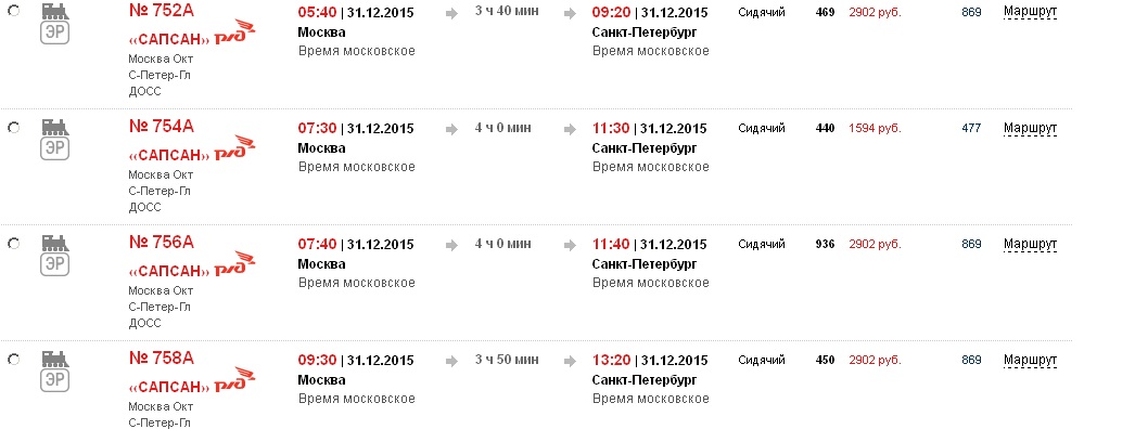 Может на 5-30 отменят ,на время общевыходных дней, он ,явно, меньше нужон будет.Это в Интернете на месяц. В кассах ДОСС и в самом Сапсане продаются нормальныеLandsberg » 02-11-2015, 06:40:А подскажите, школьные карты на Сапсан только на месяц теперь? Так понял на сайте РЖД . Были ж как-то дольше, вроде? То есть , чтобы со школьниками сгонять в каникулы с применением таких карт, нужно ее не раньше 11-12 декабря брать. А цена на билет будет уже выше?