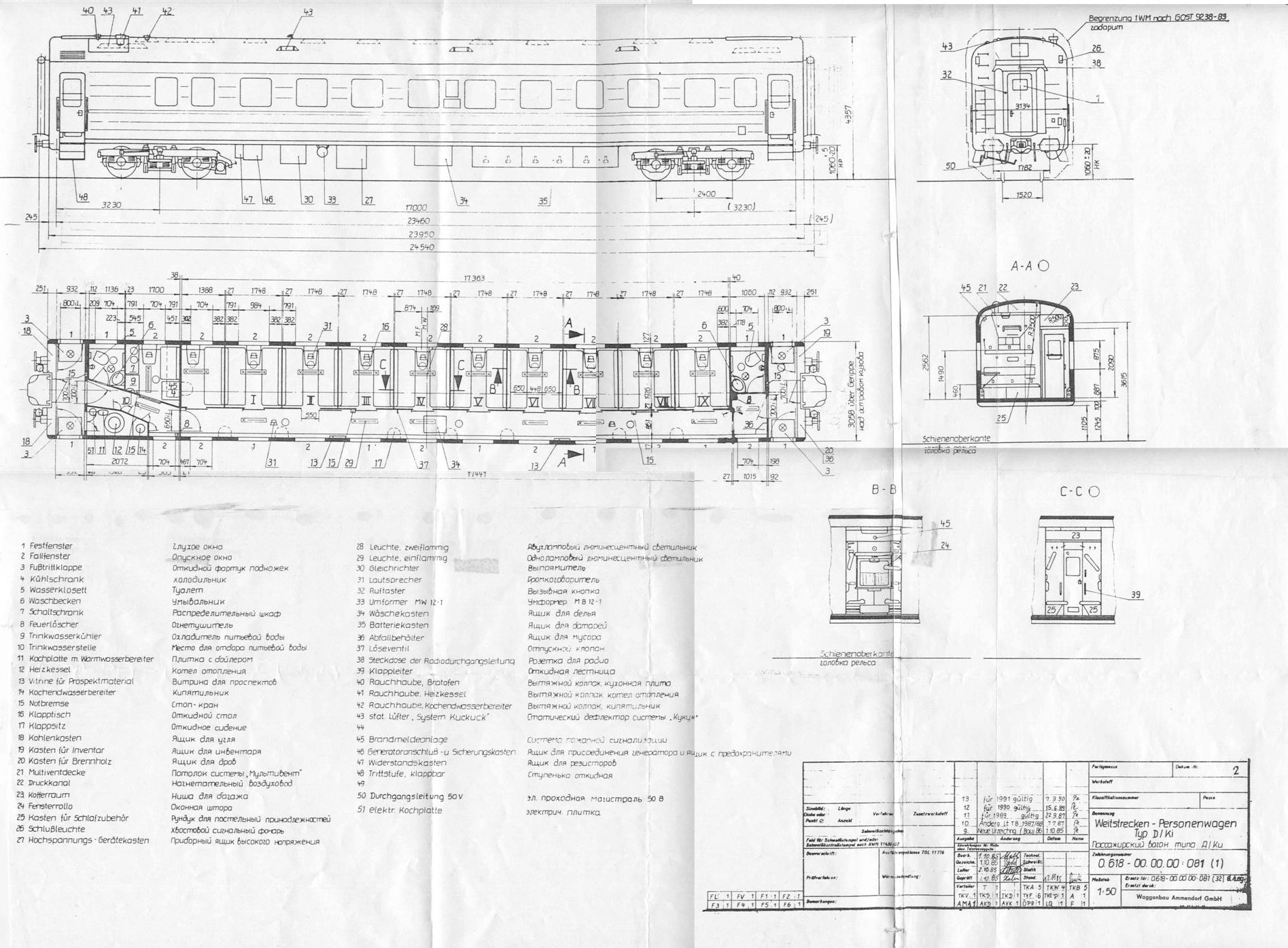 Чертеж вагона модели 47D/ki, Waggonbau Ammendorf GmbH. Преобразование в GmbH (Общество с Ограниченной Ответственностью), напомню, случилось в июне 1990 года.