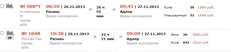 Забавные явления в очередной раз наблюдаются на направлении Москва – Адлер с продажей билетов с 16.11.2013.