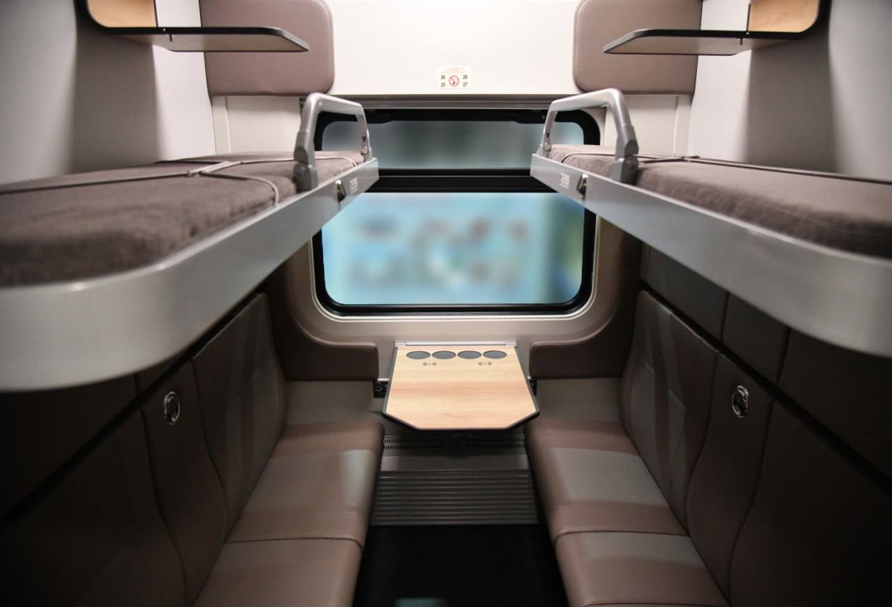 Так и не решена проблема верхних полок: толку от этих откидных столиков 0 - лучше бы окна сделали выше (вытянутыми в высоту), или отдельный ряд окон для пассажиров верхних полок, чтобы можно было нормально смотреть в окно с верхней полки! А раз коридор стал шире - вернули бы откидные сидушки!