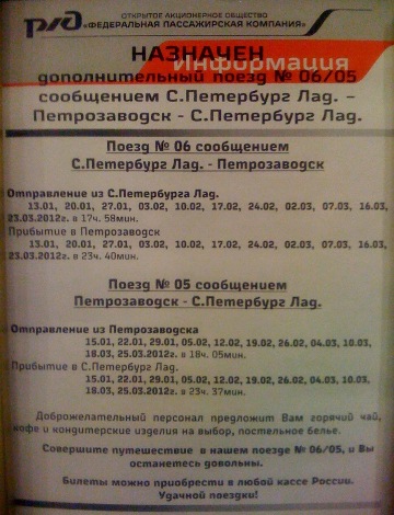 1. На вокзалах по маршруту следования поезда (в т.ч. в Петрозаводске) развешаны кошмарного вида объявления по сабжу :]:-O: .