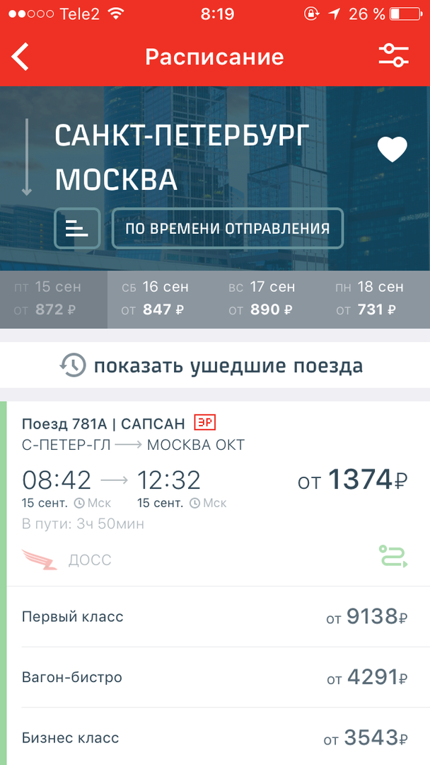 «брендовых» поездов, сортировки поездов (по времени отправления, по