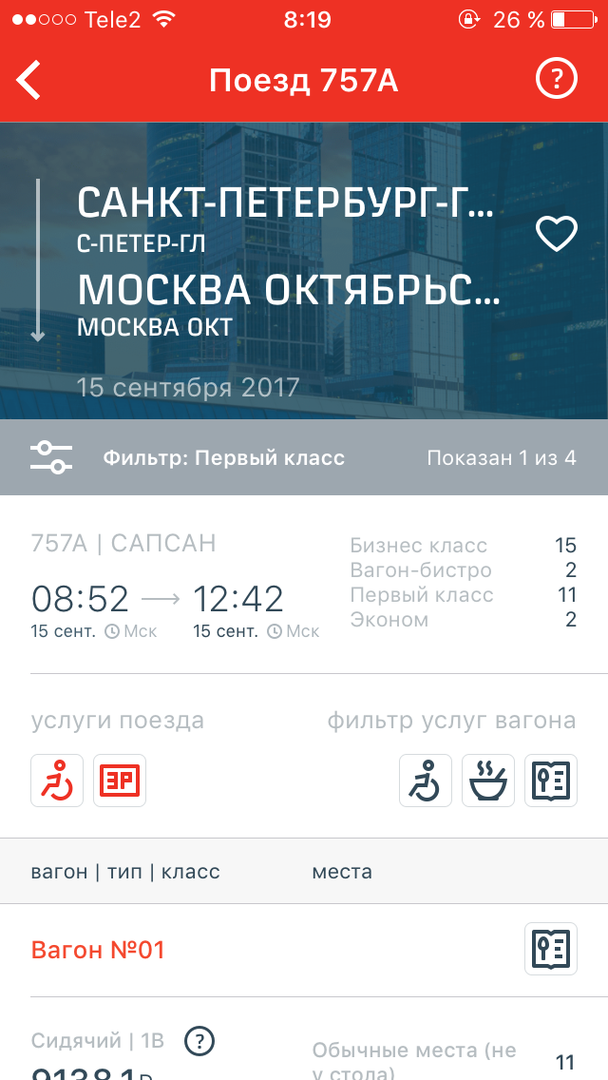 Маршрут/дата - список поездов - клац на поезде.
