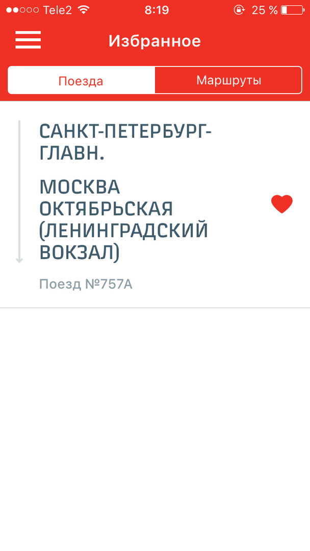 Вопрос к пользователям приложения РЖД для iOS: в разделе "Избранное" написано, что можно добавить в избранное отдельные поезда, а не маршруты, нажав на кнопку с сердцем на экране поезда. Но на экране поезда я не вижу такой, только на экране маршрута.. ::'(: