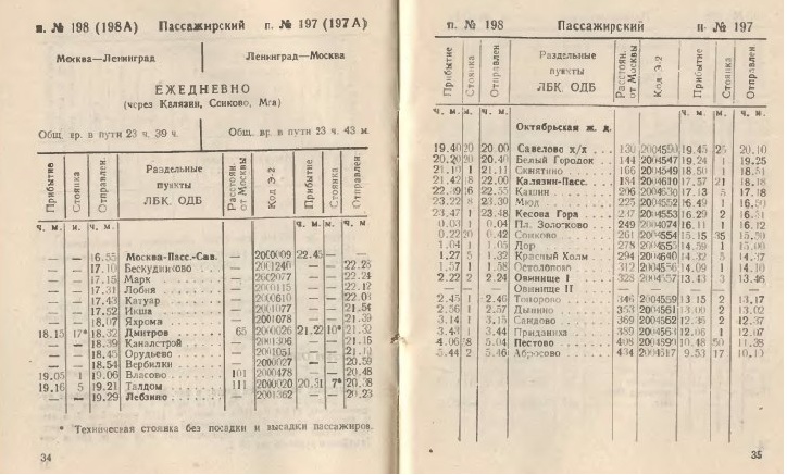 1994 год служебное расписание поезда № 640 О/639 О Москва-Весьегонск