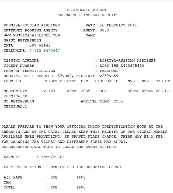 Ради интереса нашел на почте несколько электронных авиабилетов по направлению СПб-Мск за 2010-2011г.г. Все выкладывать не буду ::-D: приведу парочку.