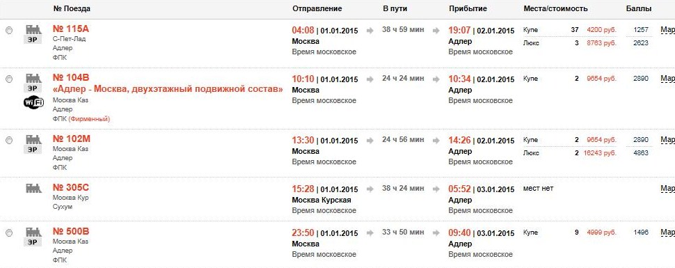 Ранее (05.12.2014) было противоположное сообщение1223333: а туда так и не взял билет, от Мичуринска надо до Адлера, жду когда цены подешевеют. ))