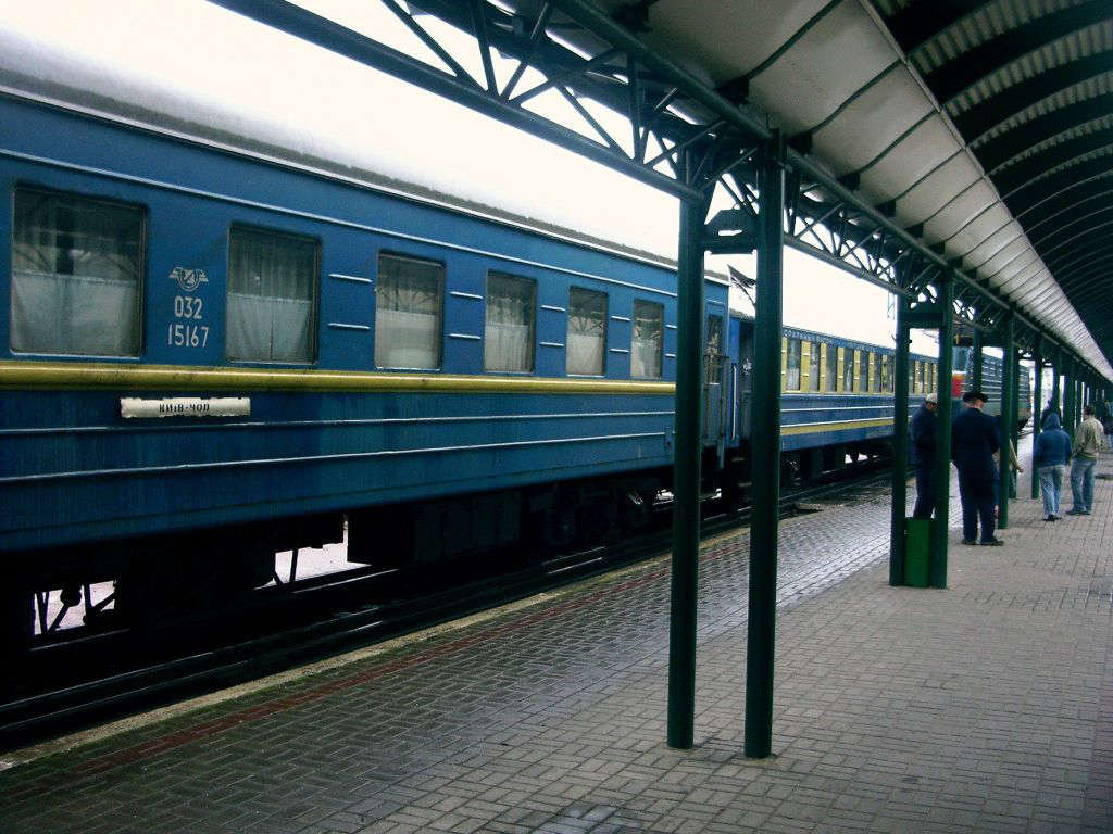Train Chop - Kiev in Chop border station in the Ukraine, Ukrainian Railways (01.10.2005). Photo by Alexander Renneberg.