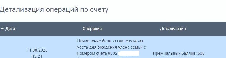 - Баллы за день рождения начисляют на личный счет
