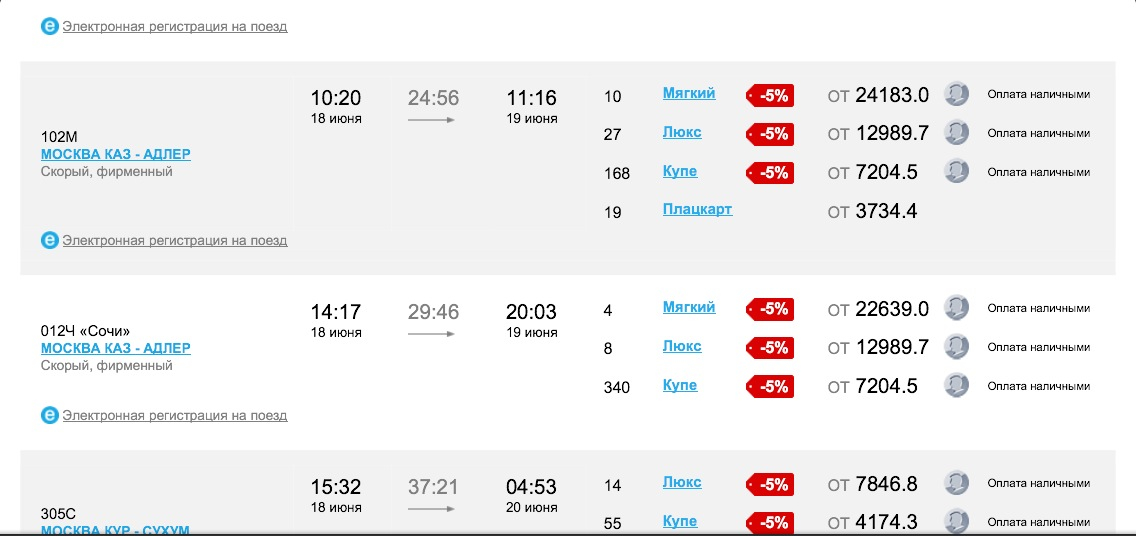 На этапе выбора видно в какие типы вагона доступна оплата наличными