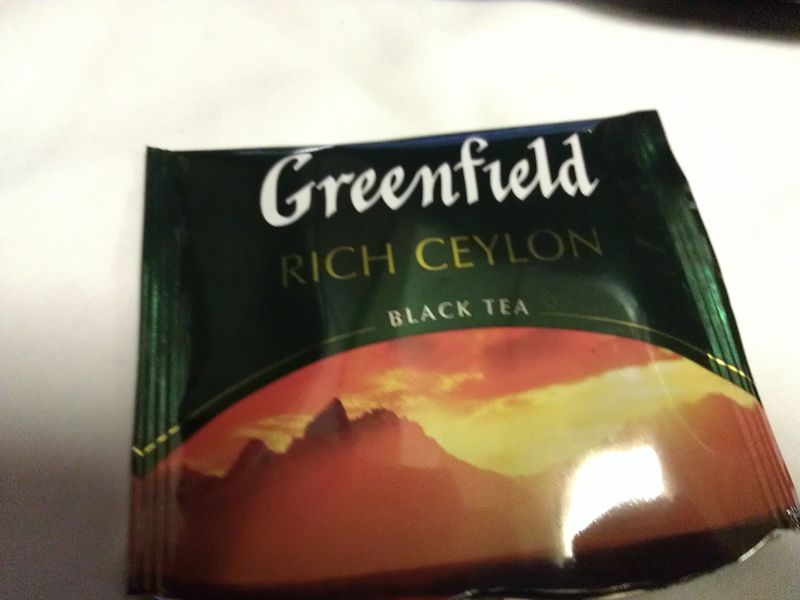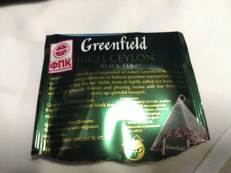 Вон какой чай теперь, фирменный, в пирамидках. Крепкий. С Гринфилдом задружились.