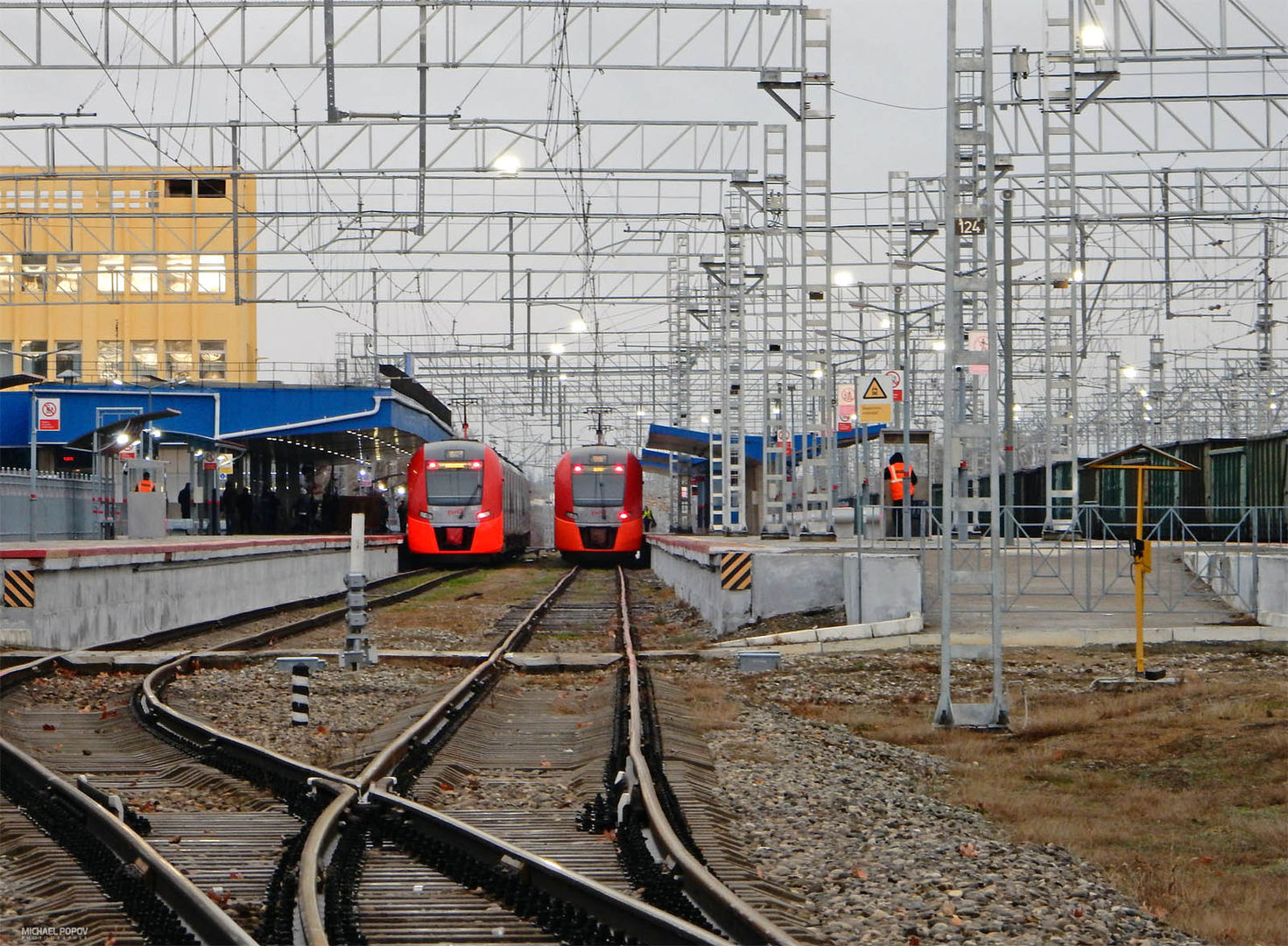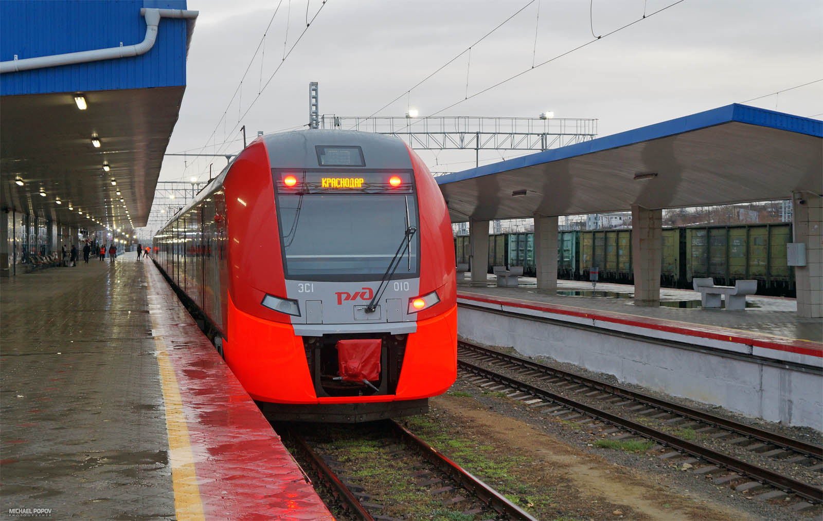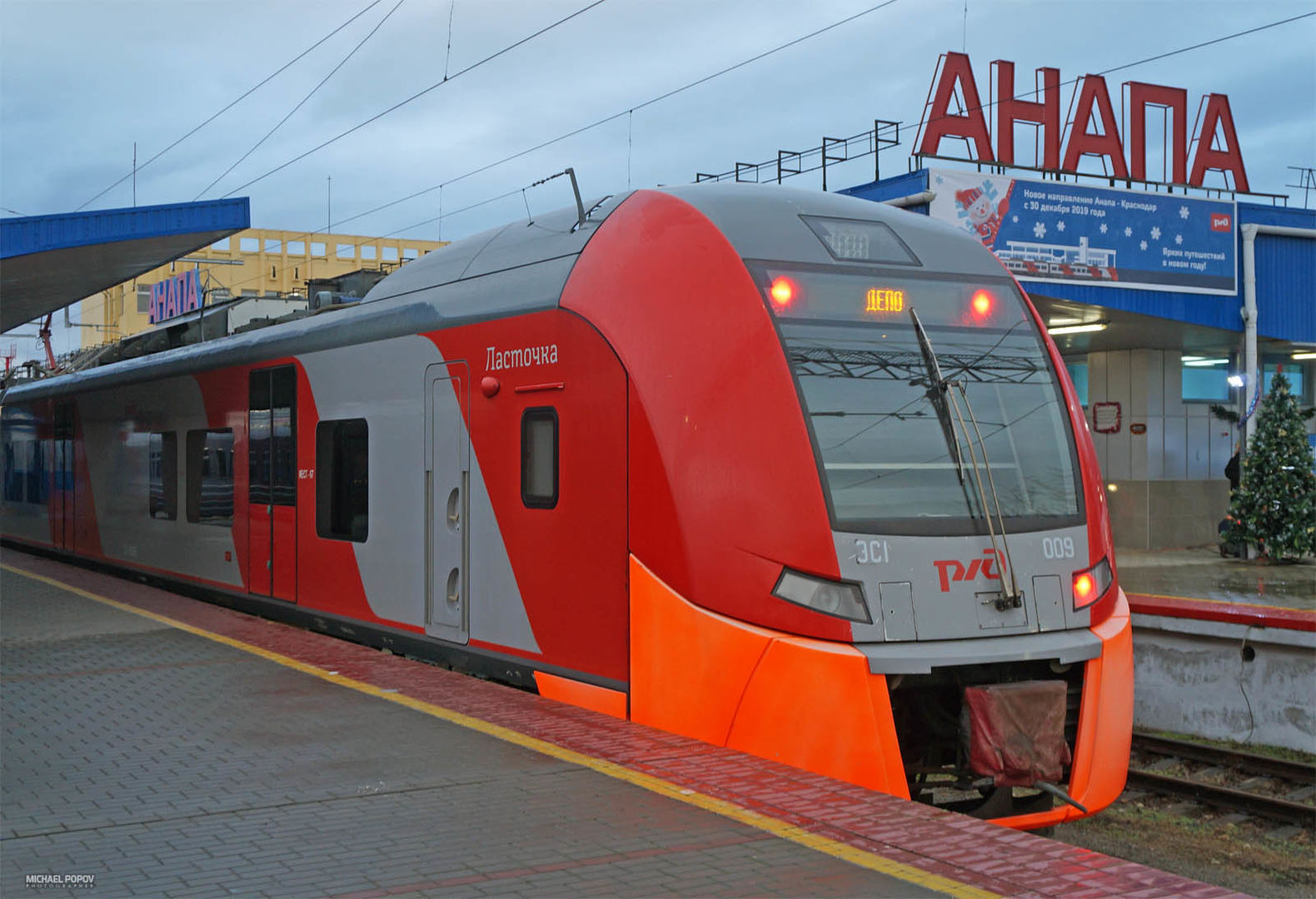 Электропоезда ЭС1 на станции Анапа, СКЖД, 30-12-19