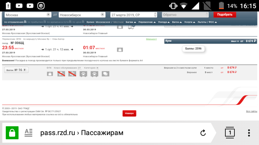 Конечно можно проехаться на каком нибудь типа "Минск - Адлер", "Минск - Новосибирск" или "Барановичи - Караганда", но в этих вроде как 37/38 не продаётся (хотя вроде в Новосибирском было раньше), да и я баллы собираю))). ::-):