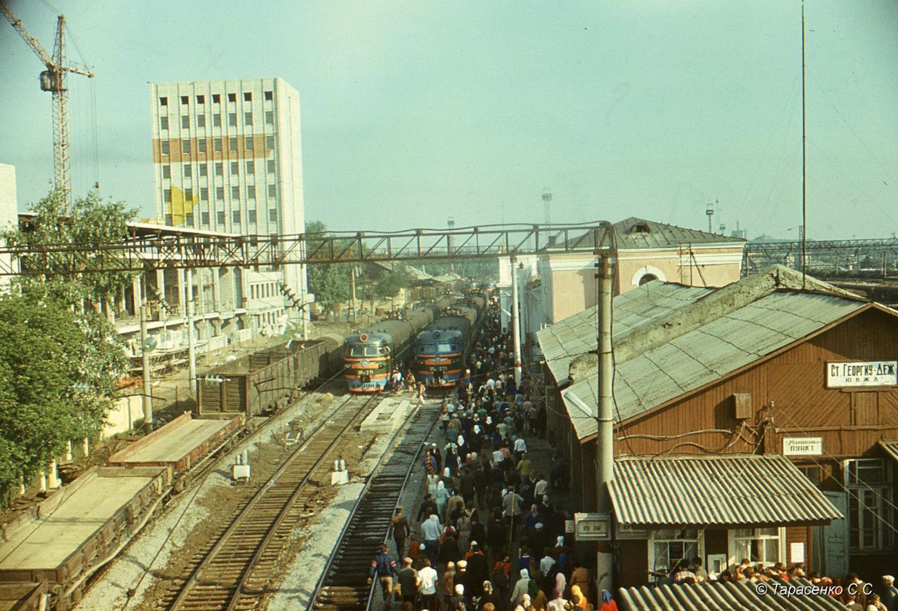 Электричка слева ЭР9ПК-271 Год постройки: 1969ВЛ80: Станция Георгиу-Деж (Лиски)