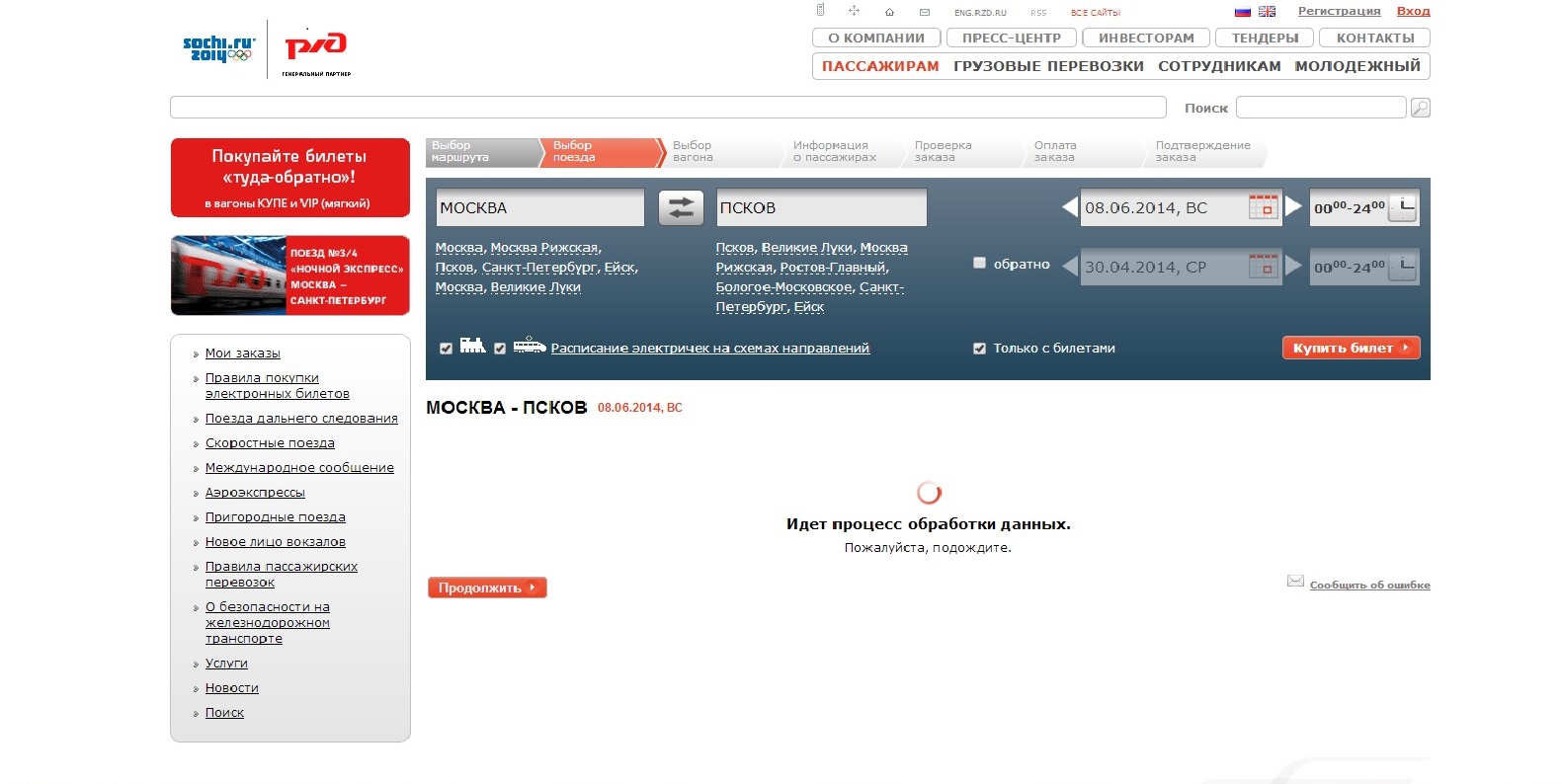 Да ну, а у меня на запрос Москва - Псков-Пасс. этот поезд появляется