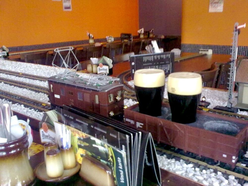 v_gildenberg:В Чехии есть любопытное заведение - ресторан Вытопна. Сеть ж/д, по которым маневрируют маленькие электрические поезда, опоясывает залы кабака.