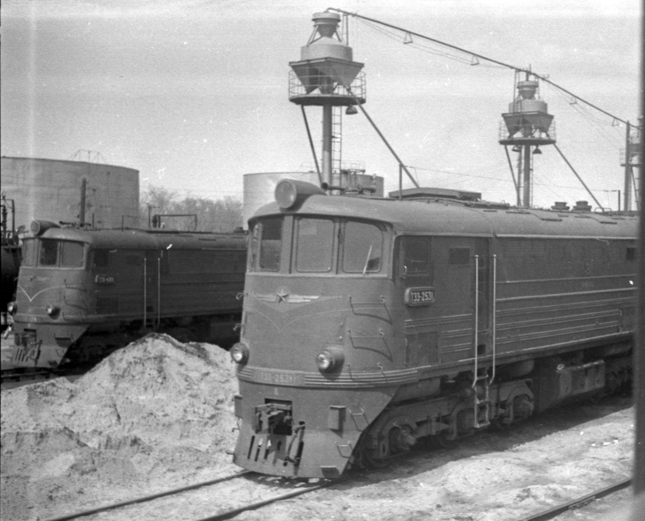 Тепловоз ТЭ3-2531 на станции Верхний Баскунчак, Астраханская область (1967-й год):