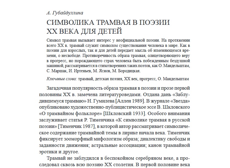 А.Губайдулина. "Символика трамвая в поэзии ХХ века для детей".