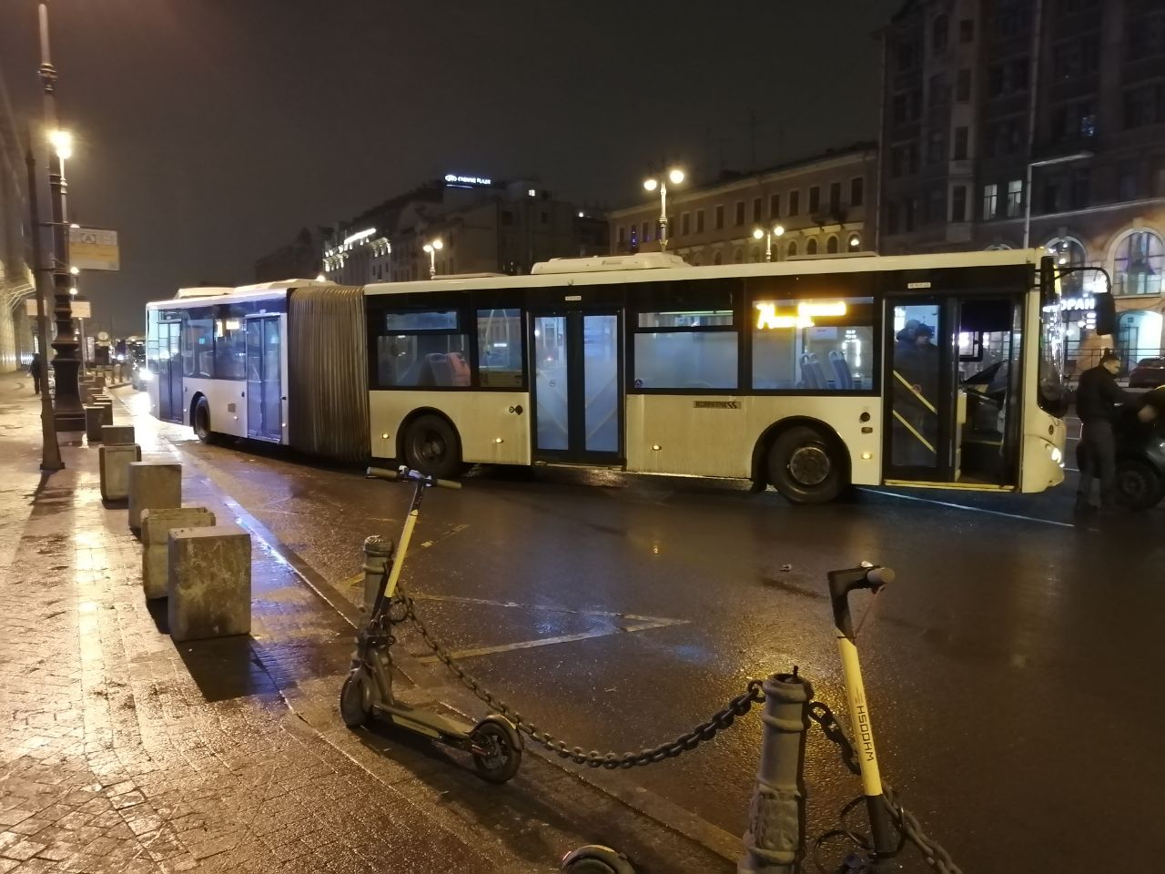 Только в Питере, на пустой Лиговке автобус таранит таксо на фоне электросамокатов
