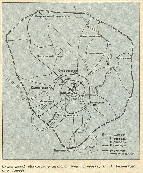 В итоге вопрос о строительстве метро в Москве был отложен аж до 1931 года. И, возможно, власти и дальше временили бы с «буржуазным транспортом». Но 6 января случился ужасный снегопад, и вся Москва встала в многокилометровой трамвайной пробке. Создатели советского метро, хотя и увели поезда под землю, все же ориентировались на некоторые идеи Балинского и Кнорре. Это касается и главного направления в сторону Сокольников, где была проложена первая ветка метрополитена, и создания кольцевой линии.