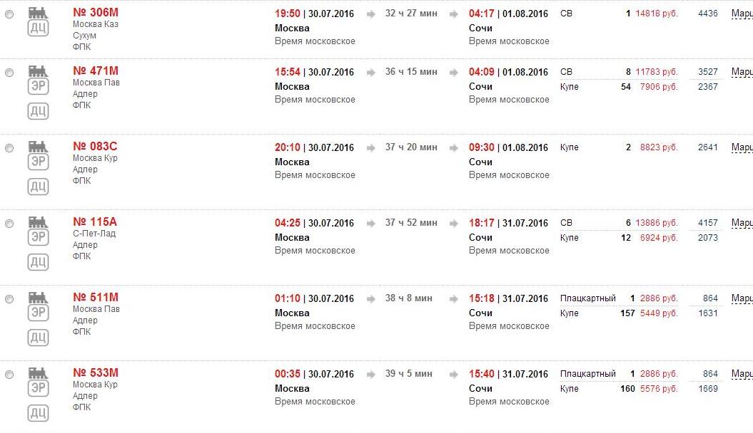 № 471М Купе Москва – Адлер (7572 руб.) Сочи (7906 руб.);