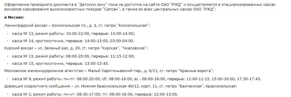 Действительно, информацию о том, что в спецотсек 10 вагона можно купить билеты пассажирам с детьми или несопровождаемым детям найти не так уж и просто - http://press.rzd.ru/news/public/ru?STRU ... 7&id=84570 Показательно, что билеты продаются не во всех кассах, а только в специализированных. Не менее показателен и уровень сотрудника, размещающего новости и пребывающего в уверенности, что Курский вокзал в Москве расположен на улице Зеленый вал: