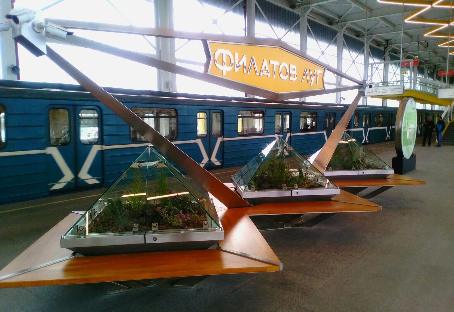Сегодня прокатился по новому участку на юге Сокольнической линии. Наиболее симпатичной показалась станция "Филатов Луг" - начиная с оригинального названия и заканчивая стеклянными колпаками-витринами, содержащими образцы луговых растений Подмосковья