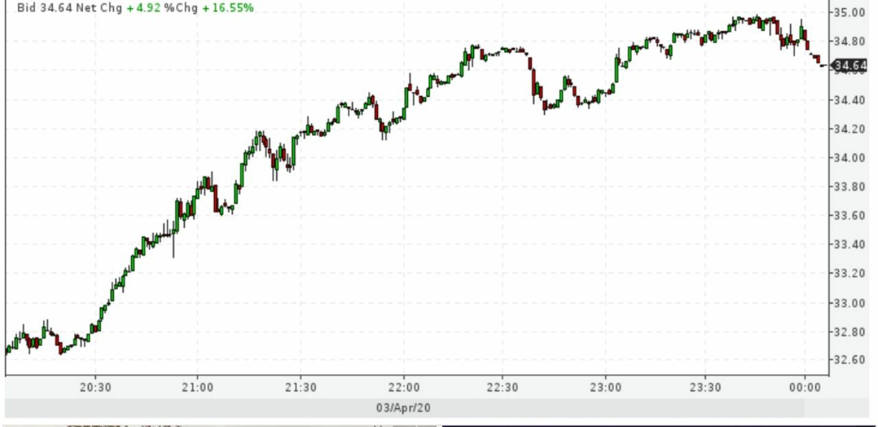 Чуть не дошли до 35 долларов. Администрация США, возможно, рассматривает возможность прекращения добычи нефти на платформах в Мексиканском заливе в связи с распространением коронавируса среди занятого там персонала.