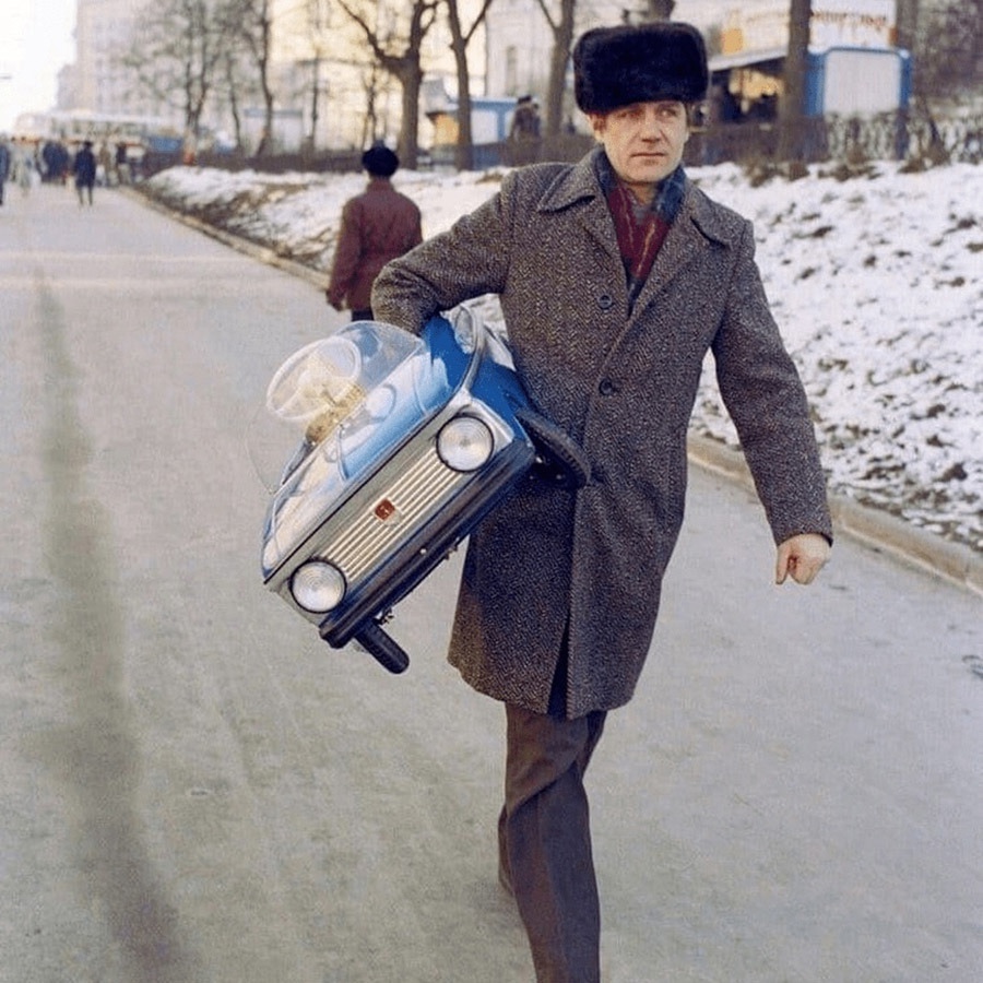 Колхозник идёт продавать свою машину.