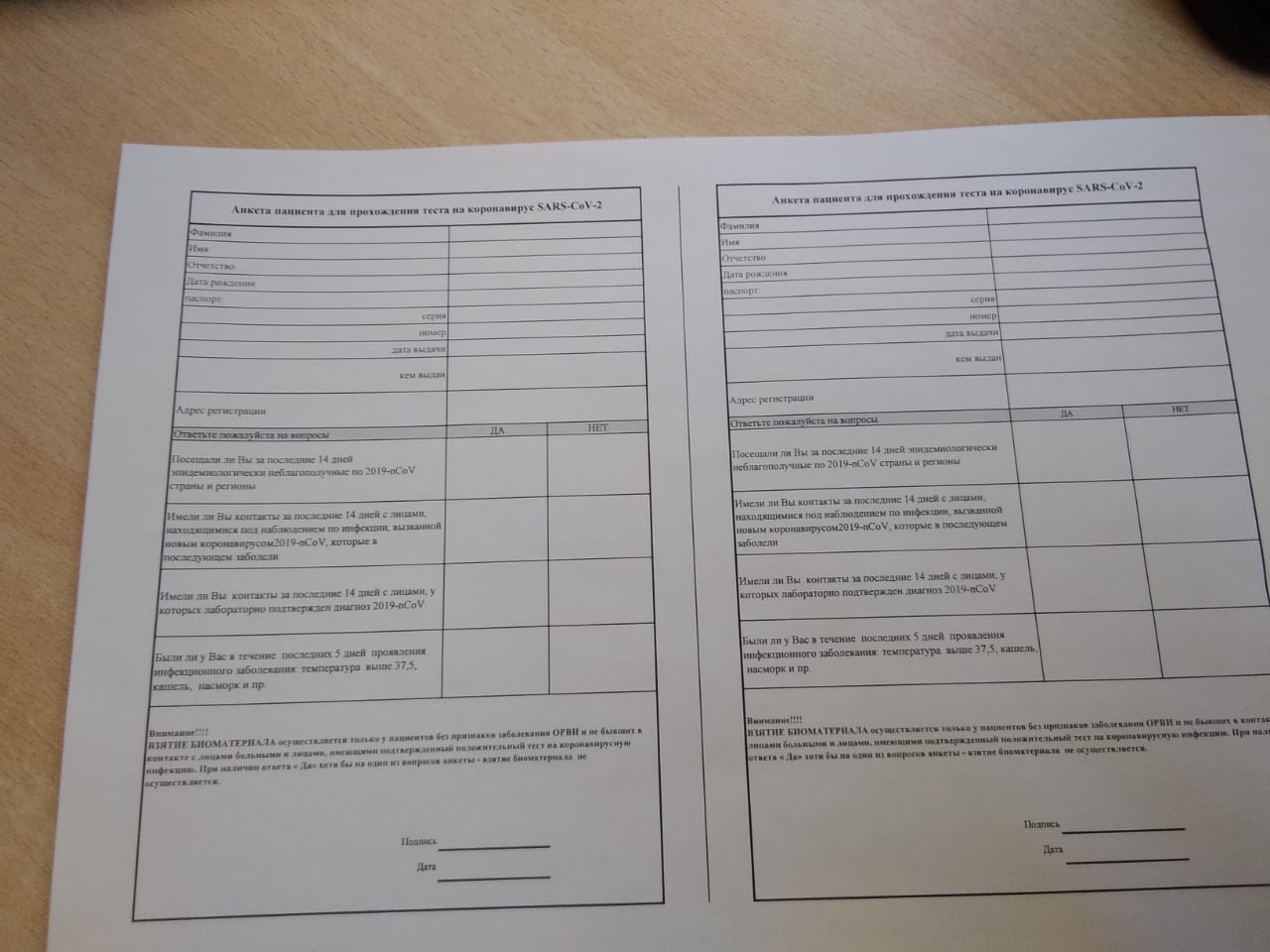 Перед тем как сдать тест, вы обязаны заполнить следующую анкету: