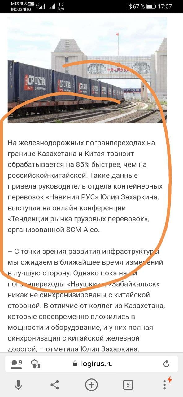 А что по факту? Ну во-первых ни знаний ни фантазии. Авторка (феминитив!) не понимает разницу - погранпереход в Казахстане, для местных это транзит, погранпереход на российско китайской границе, это экспорт импорт. Но самое главное, она бы сильно удивилась если ей покажут фотографии терминала в Эрэн-Хото, чтоб она узнала, как в Китае в 21 веке такелажкой контейнеры грузят (!)