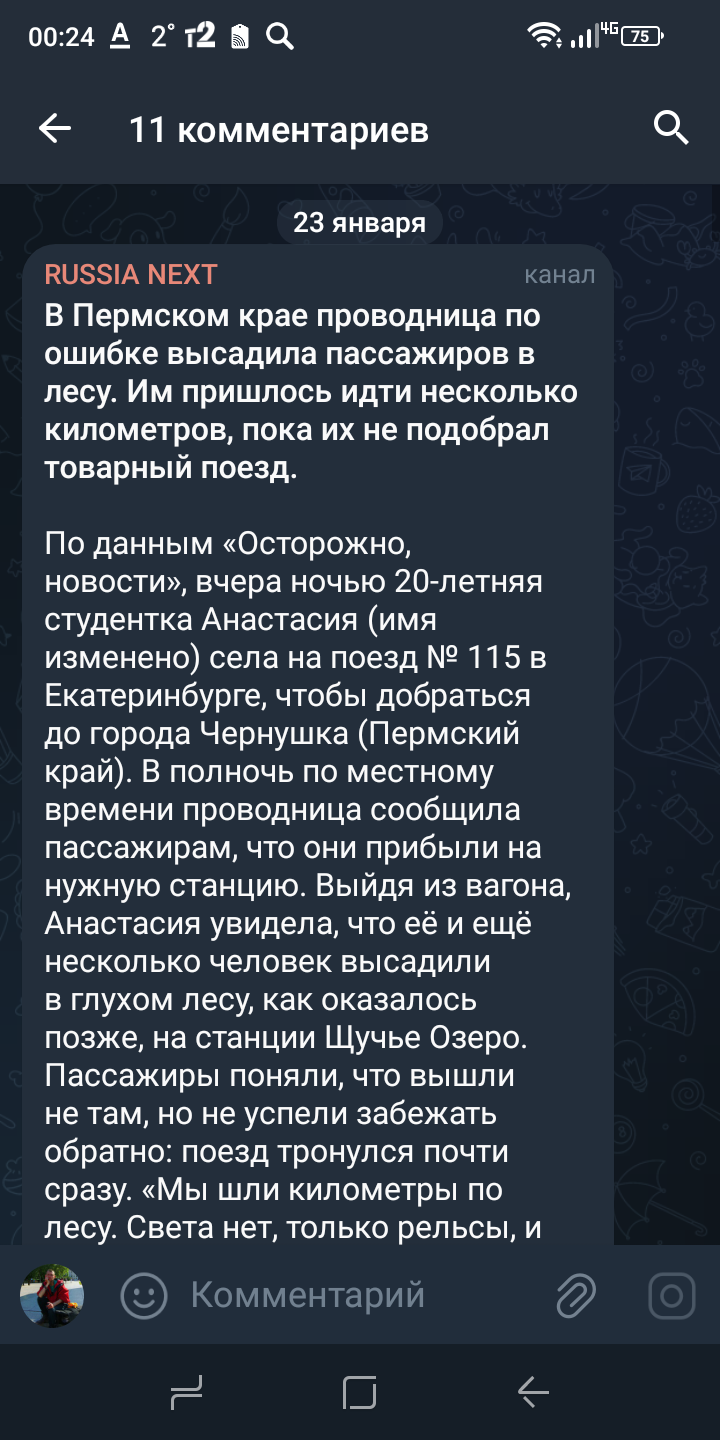 Ранее пассажиры рассказали пабликам, что их высадил проводник раньше времени на ошибочной станции, им пришлось идти через лес.