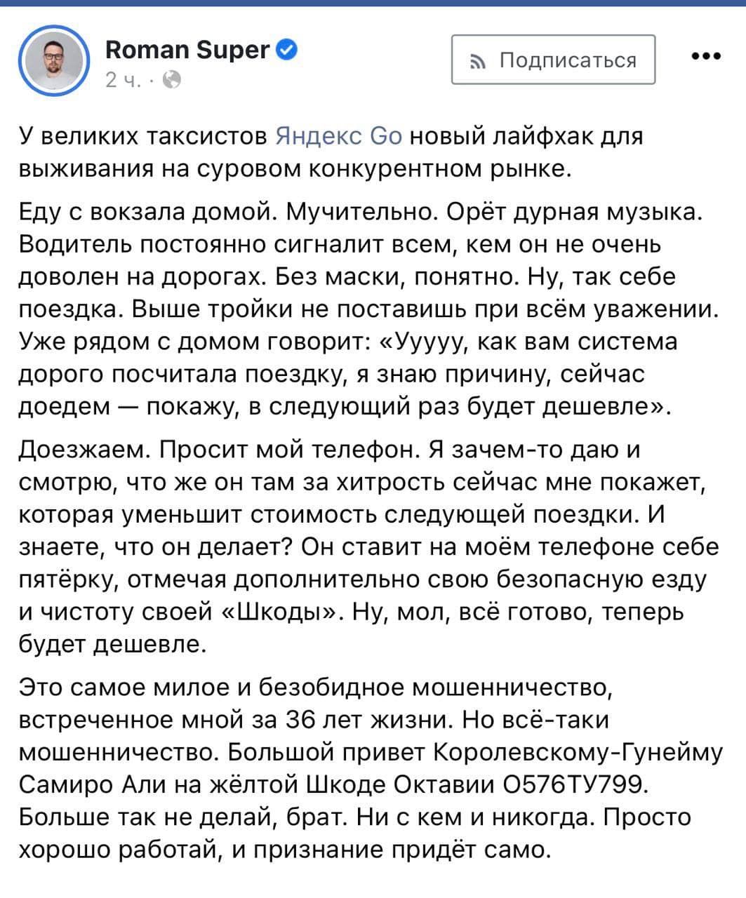 Нет. Просто некий Роман Супер показал свое моральное превосходство над водителем такси!