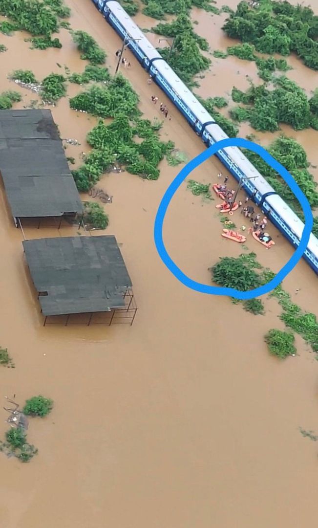 На путях застрял пассажирский поезд Мумбаи-Колпаху. Вода поднялась на 1,5 метра и люди не смогли самостоятельно выбраться из вагонов. 700 пассажирам пришлось около 15 часов ждать помощи спасателей.
