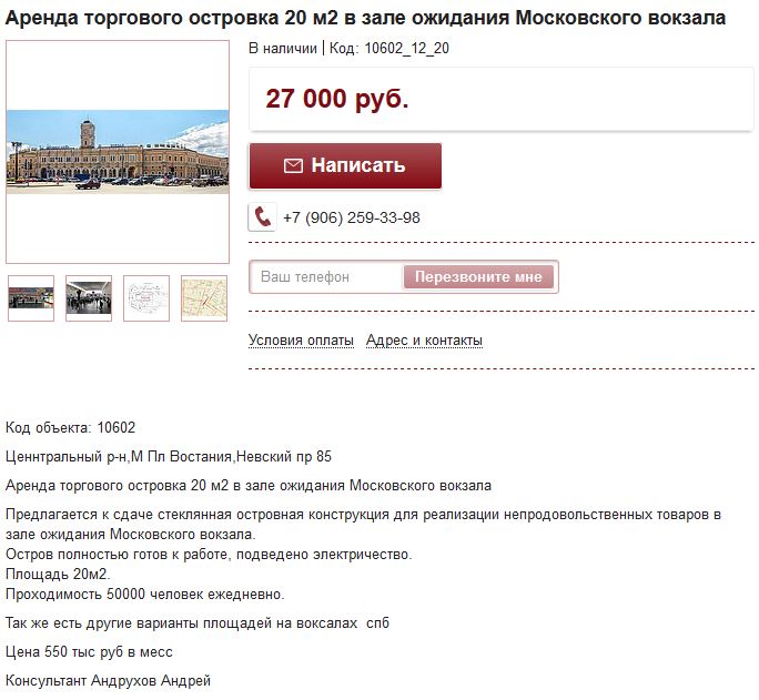 А некое мутное агентство недвижимости предлагает аренду площадей в том же самом вокзале уже за 27500р за квадратный метр, т.е. в 5 раз дороже.