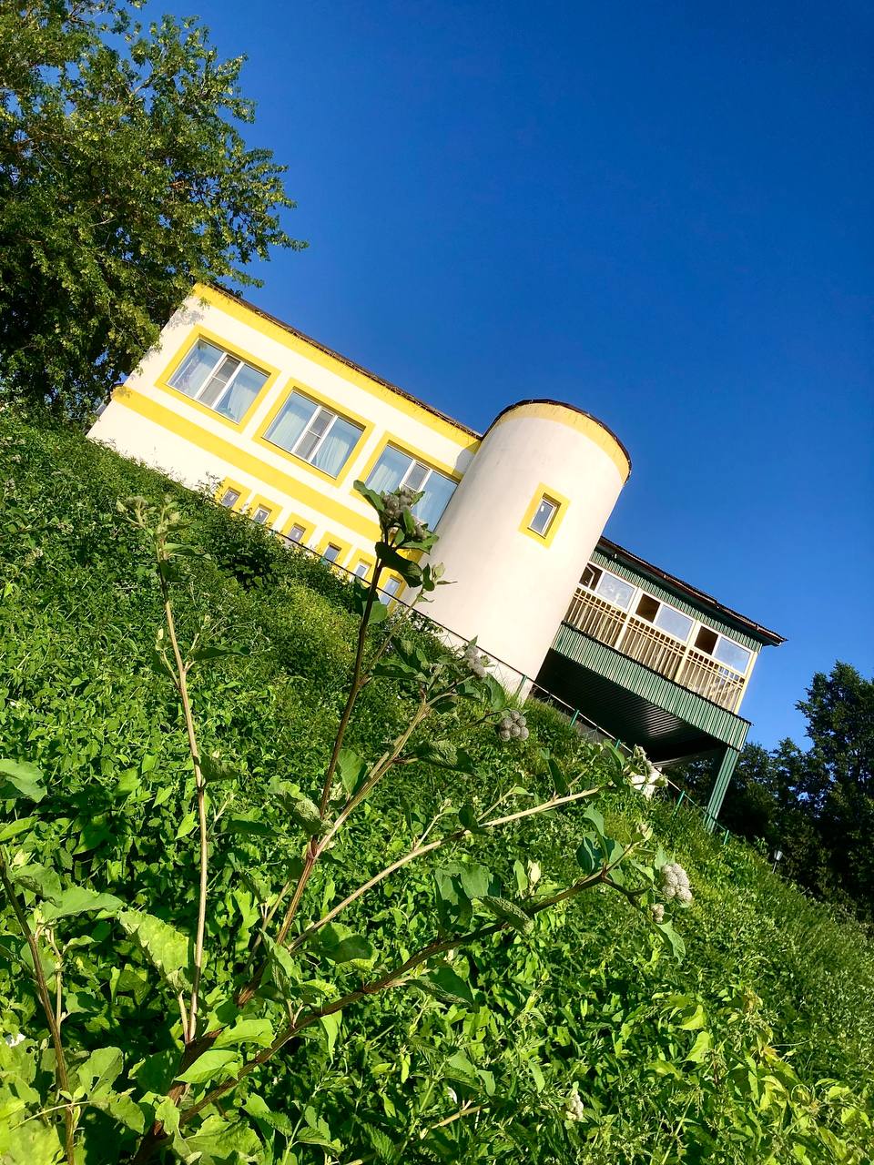 Вот дом, он стоит на высоко, оттуда вид на красоты вокруг, он чуть ли не самый знаменитый в Тарусе. Нет, там Цветаева не жила. Там кафе «Ока». Почти советский такой общепит, греча с подливой, сам ходишь с подносом, работают строгие тетеньки.