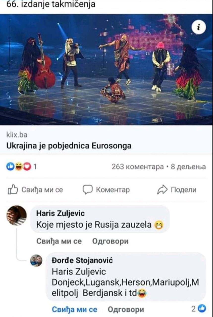 Серб (на сербском "место" - и место в соревновании, и населенный пункт): «Донецк, Луганск, Бердянск, Мелитополь, Мариуполь».