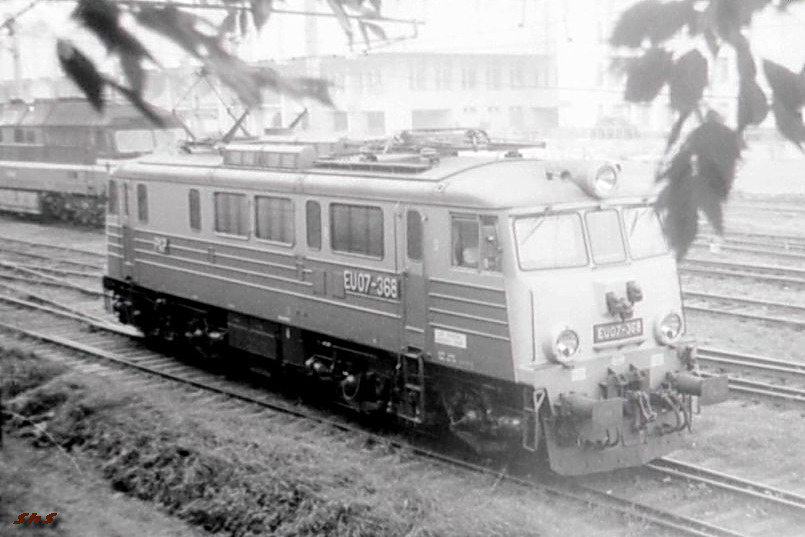 Электровоз PKP EU07-368 на станции Гродно, Гродненская область (1994-95 годы):