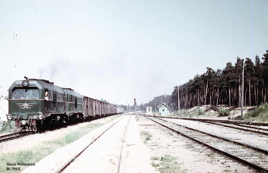 Тепловоз ТУ2-097 с грузовым поездом на станции Лийва, Эстонская ССР (фото сделано в июне 1969 года):