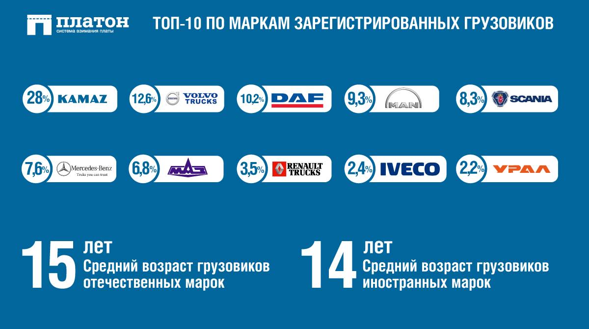 Но на дорогах пока еще доминирует европейская "большая семерка". Ее доля среди всех большегрузов - 53,9%.