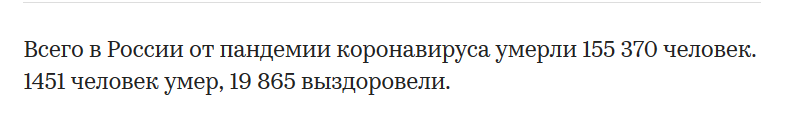 Так Бордюрыч всех и позаражал. Всплеск и пошел примерно через 2 недели, как 15 числа десятки, если не сотни тысяч, постояли в очередях на пропуск в метро. А теперь надо списать на "шашлыки", "нарушения самоизоляции" и прочее. Более того, многим регионам долго не разрешали закрывать границы. Я разговаривал с одним нашим местным представителем РПН, он говорит, что завозных случаев из-за рубежа было 29 и все они были перехвачены, полностью установлен первый круг общения, передача дальше не пошла. А с Москвой не разрешали закрыть сообщение до 14 апреля, по сему все бессимптомные зараженные массово и неконтролируемо валили из Москвы по райцентрам. У нас в облцентре меньше зараженных, чем по области.nataly-m: