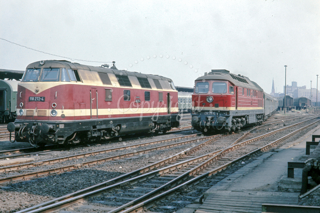 BW1735 - East Germany DR class 118 272-4 at Berlin Ostbahnhof station. Allongside 132 213-0 (17.07.1976) - Brian Walker.