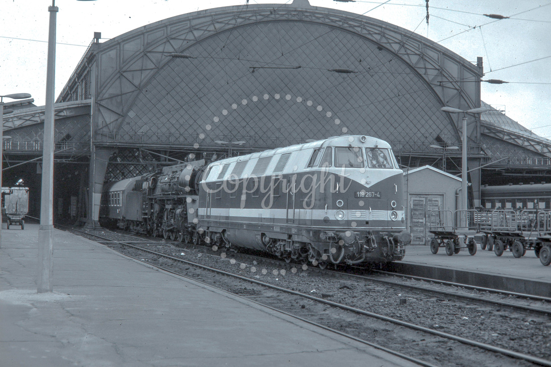 BW3523BW - East Germany DR class 118 267-4 at Dresden Neustadt station. Leads 01 1515 on passenger (22.07.1976) - Brian Walker.