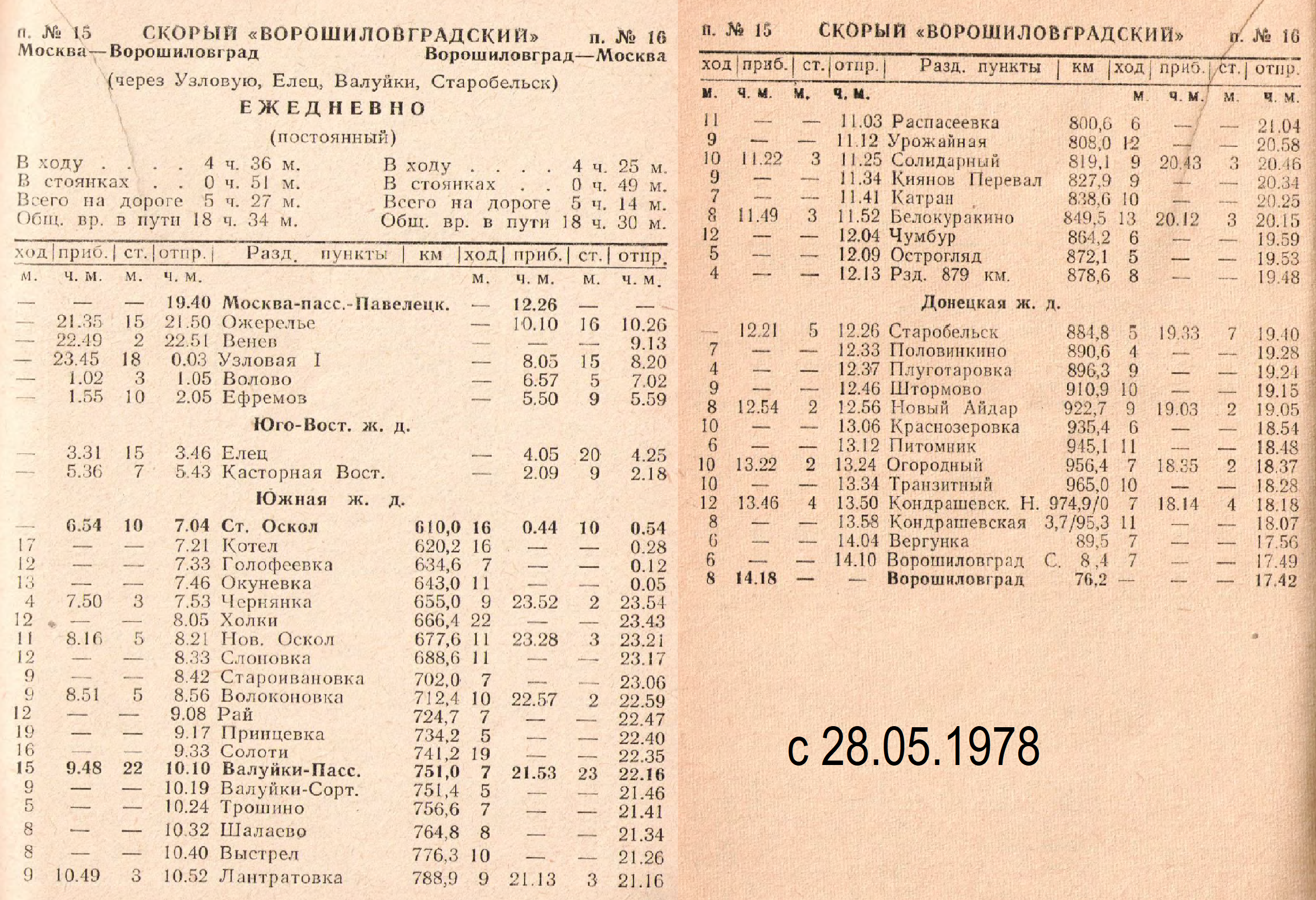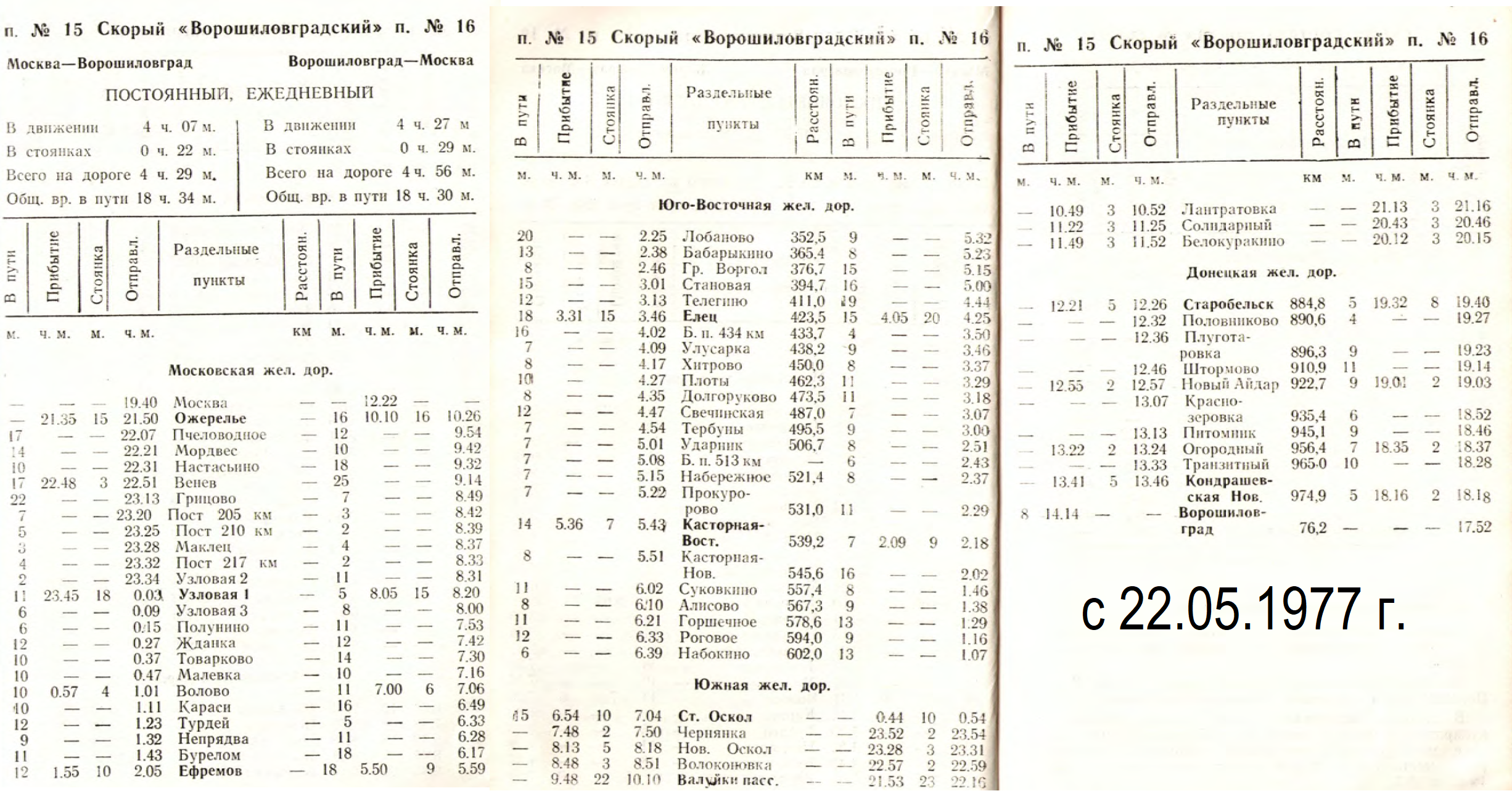 С 1976 года передали участок Старый Оскол-Валуйки и Старый Оскол-Сараевка в состав ЮждПридача:Обратно вообще 9 минут, а Белгородская область была ЮЖДВладимир Дукин: Смущает вот Ефремов и стоянка в 10 минут до конца 70ых. Там то чего можно было делать?
