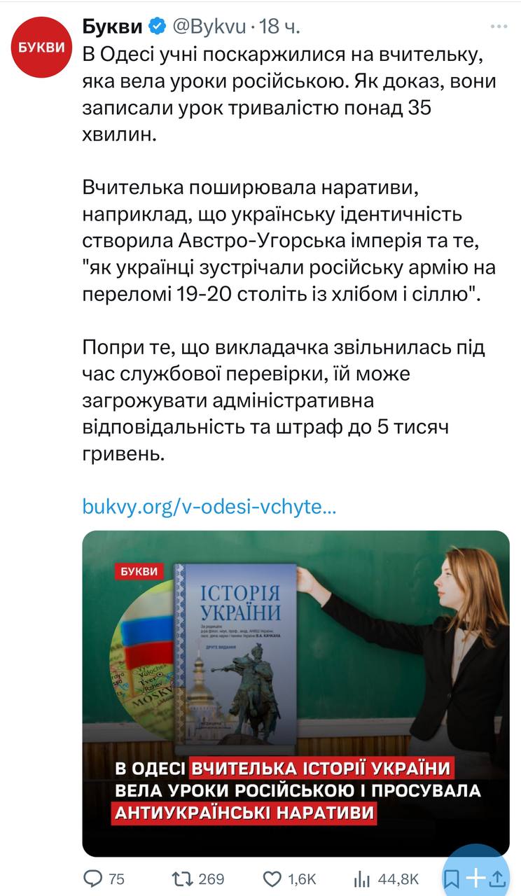 Школьники в Одессе написали донос на учителя за "российские нарративы" и ведение урока на русском языке