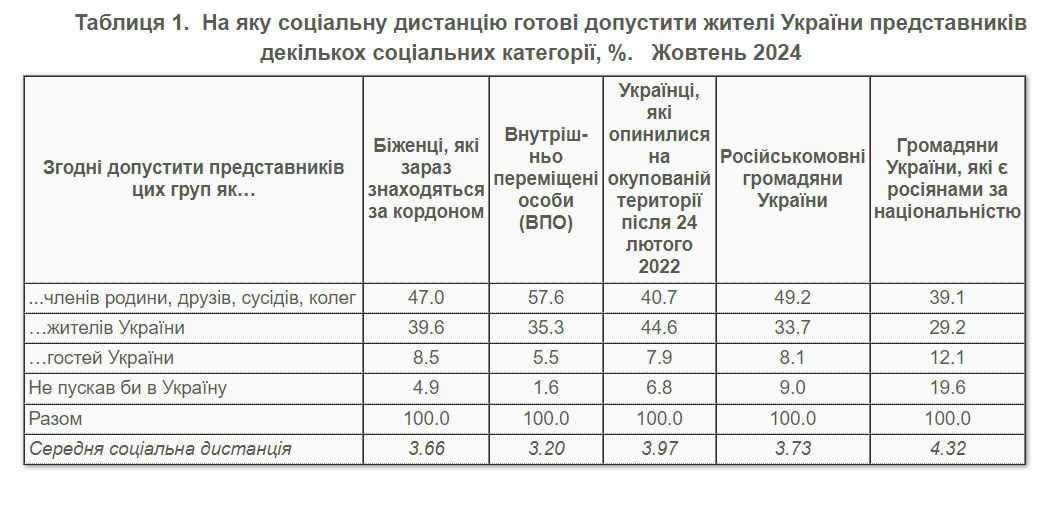Переводить времени нет. Так что самостоятельно. Из любопытного: только 44,6% украинцев готовы впускать в свое окружение людей, оставшихся в ЛДНР, Запорожской и Херсонской областях. 6,8% вообще считают что их нельзя пускать на территорию быв. Украины.