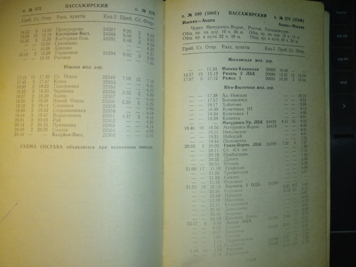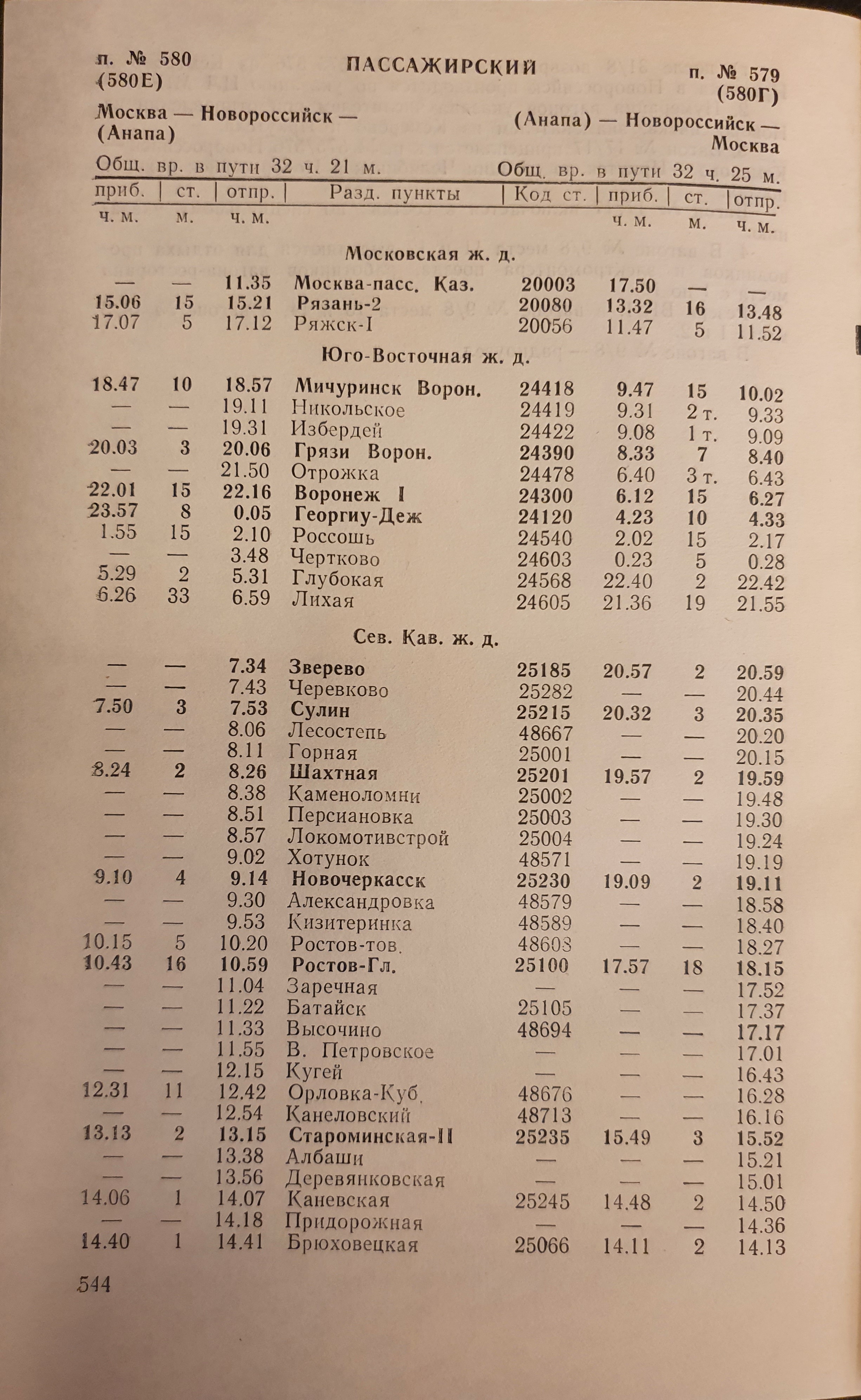 Может у кого есть расписание за 1985 год поезда Москва-Анапа 579/580?