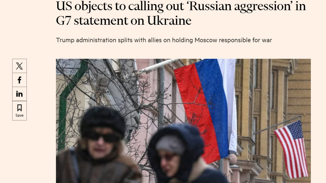 США выступают против использования термина «агрессор» в отношении России в новом коммюнике G7, — FT со ссылкой на источники