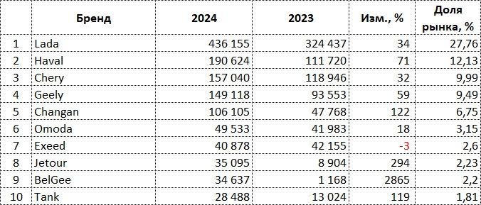 В октябре 2024 года было продано 171 179 новых легковых машин. Это на 52% больше, чем октябре прошлого года. Из интересного в рейтинге октября можно отметить неизвестно откуда попавшую на девятое место японскую Toyota...